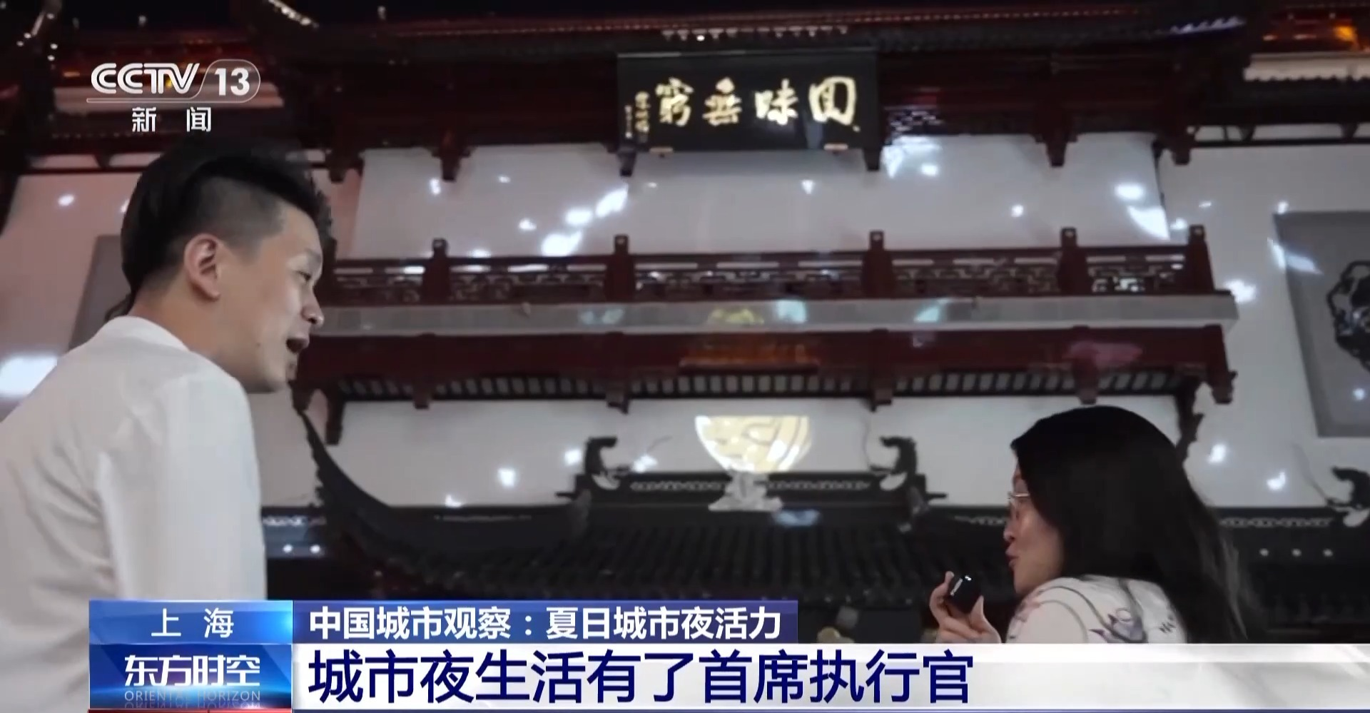 老北市景区负责人 张远义:据我们的数据监测,2025年到目前为止,每天晚上的游客数量都不低于4万人次。 据统计,老北市自完成老街区改造以来,年均游客接待量突破1000万人次。这座可赏、可游、可玩、可食的“不夜城”,正成为拉动沈阳夜经济的新地标。 城市夜生活有了首席执行官 城市夜经济散发蓬勃活力,这些热闹多彩的新业态、新场景是如何产生的?在繁华的夜上海,有这样一群人,奔走在各大商圈,连接政府和商户,架起夜间消费与城市发展的桥梁。今年7月,上海官方为首批“上海夜间经济人气地标首席执行官”及“上海夜生活好去处首席执行官”颁发了证书。这些城市的“夜生活CEO”,具体工作都有哪些? 这个夏天,上海豫园与互联网平台跨界打造“豫园夏日奇幻夜”,光影梦幻,吸引了不少市民和游客前来消费游玩。上海夜间经济人气地标首席执行官胡俊杰,几乎每天都会来豫园巡查一圈。